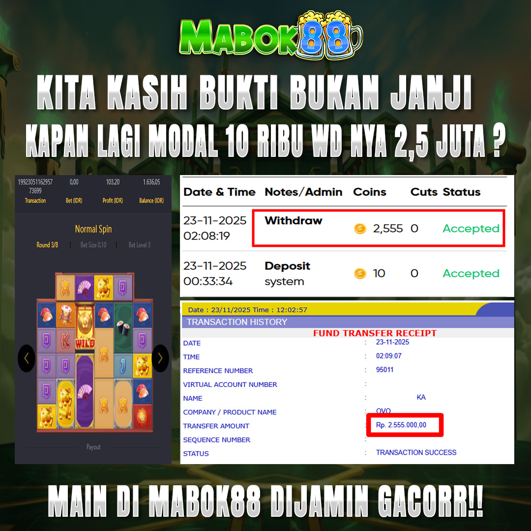 SURGAWIN288 menghadirkan game jackpot vip yang di lengkapi fitur khusus new member hanya dengan modal deposit 10k dijamin akan withdraw 2,5+ juta malam ini.